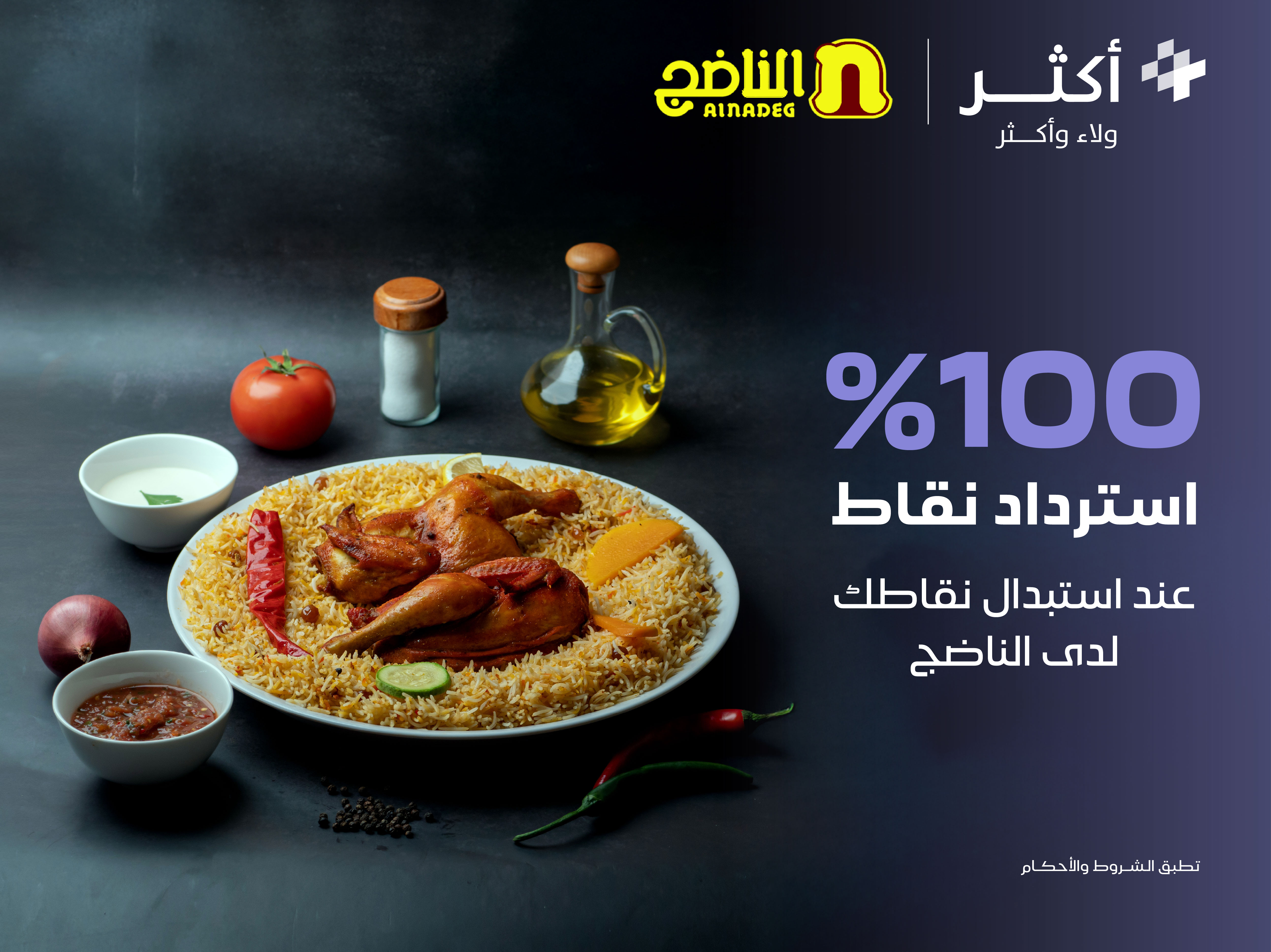 - استرداد 100% من مجموع النقاط المستبدلة خلال فترة العرض لدى الناضج بحد أقصى 10,000 نقطة لكل عميل.