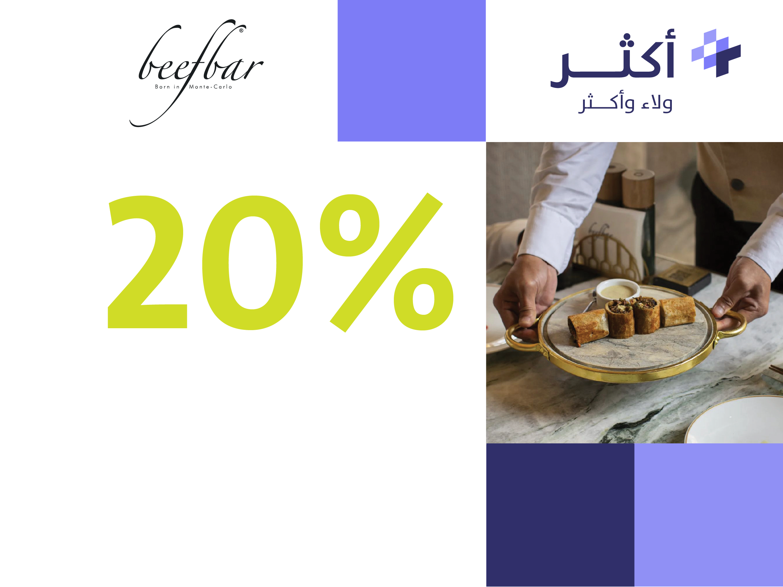 استمتع بخصم 20% عند الدفع باستخدام بأي من بطاقات الإنماء لدى مطعم بيف بار