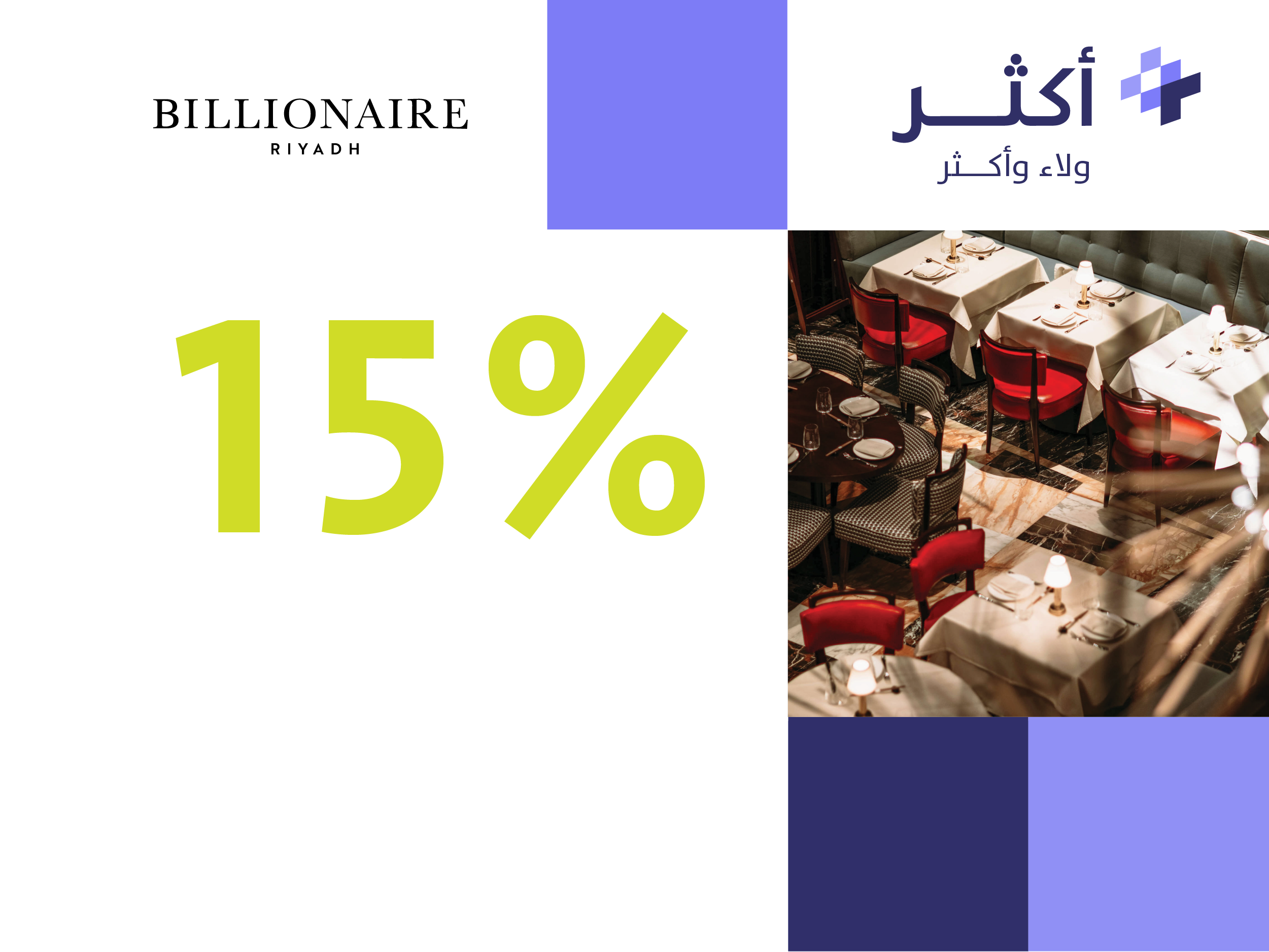 استمتع بخصم خاص 15% عند الدفع باستخدام بطاقات الإنماء لدى مطعم بيليونير