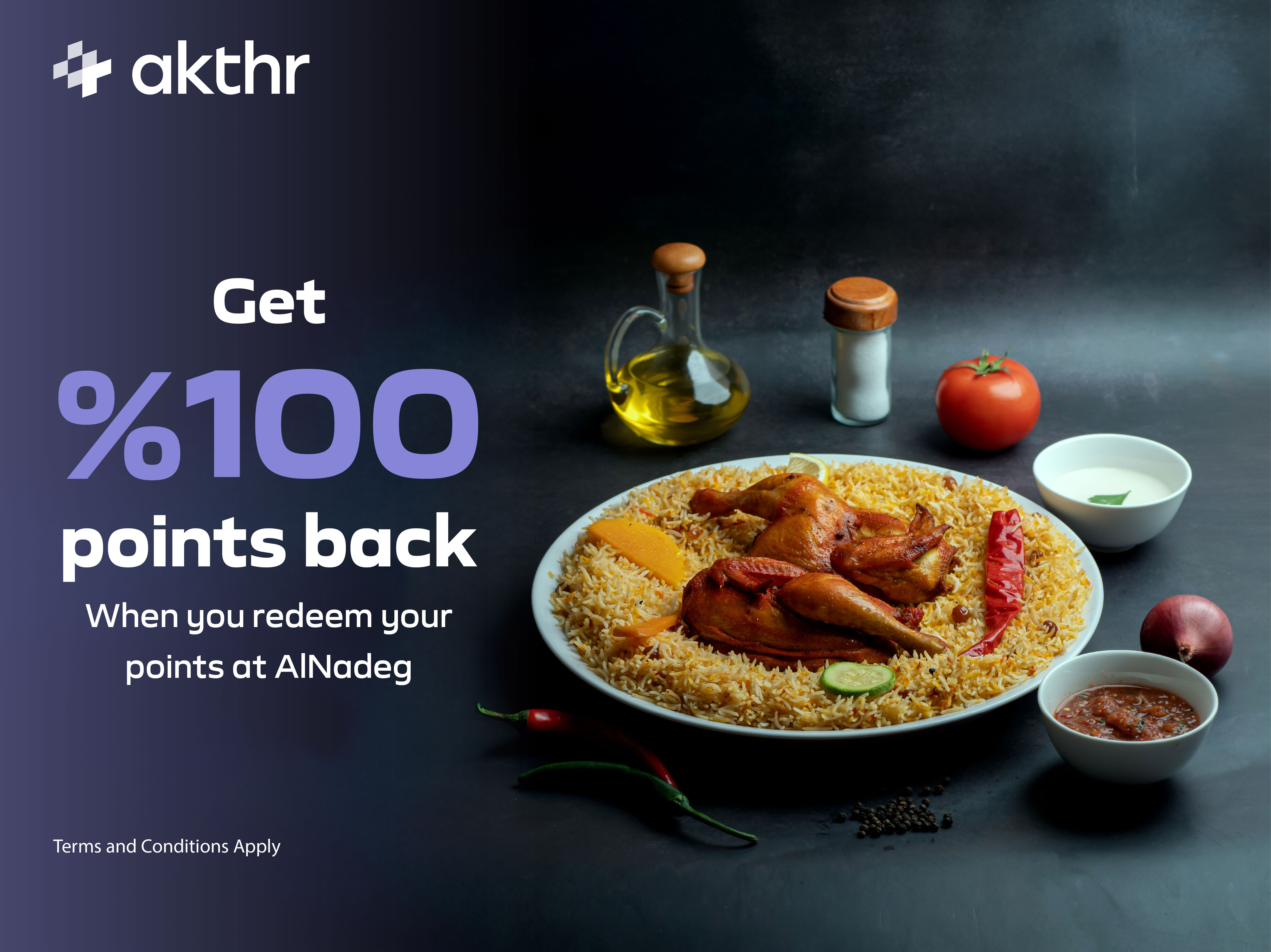 Get 100% points back when you redeem akthr points at AlNadeg branch